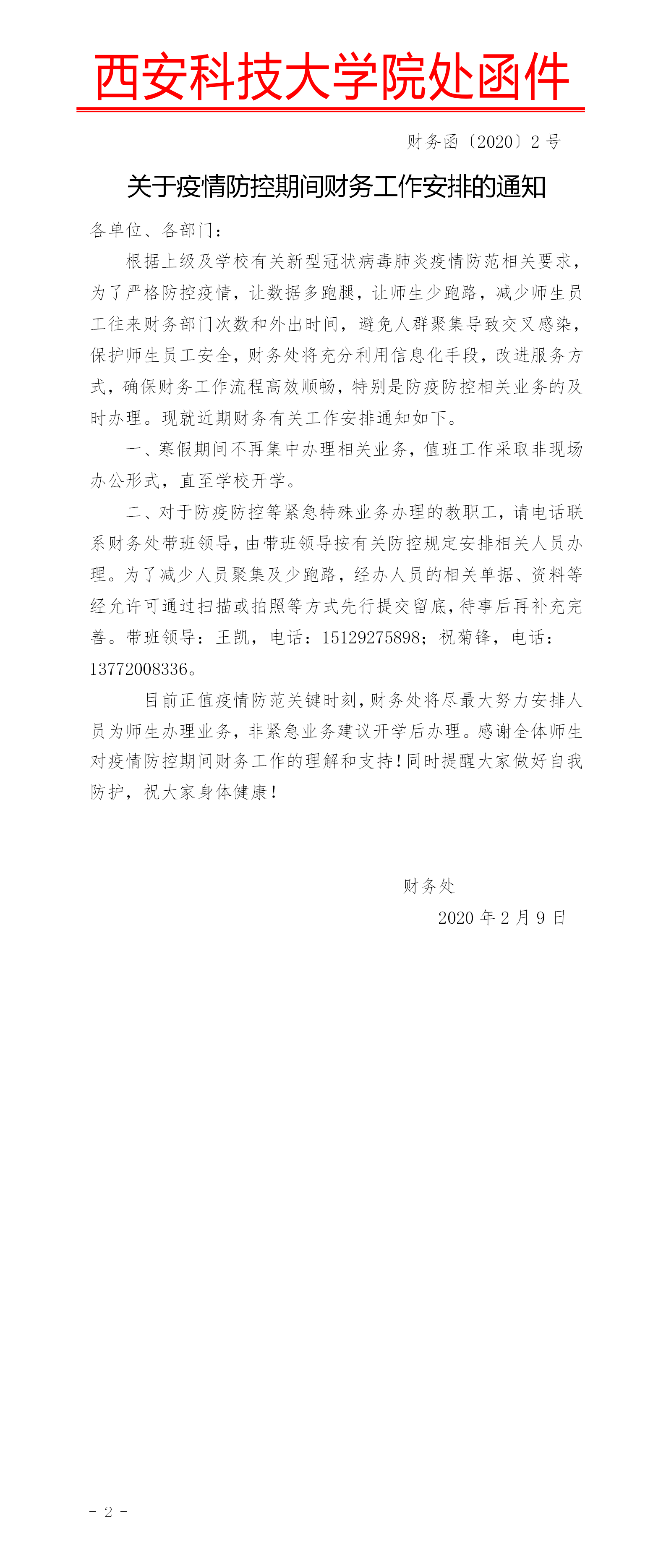 关于疫情防控期间财务工作安排的通知.doc