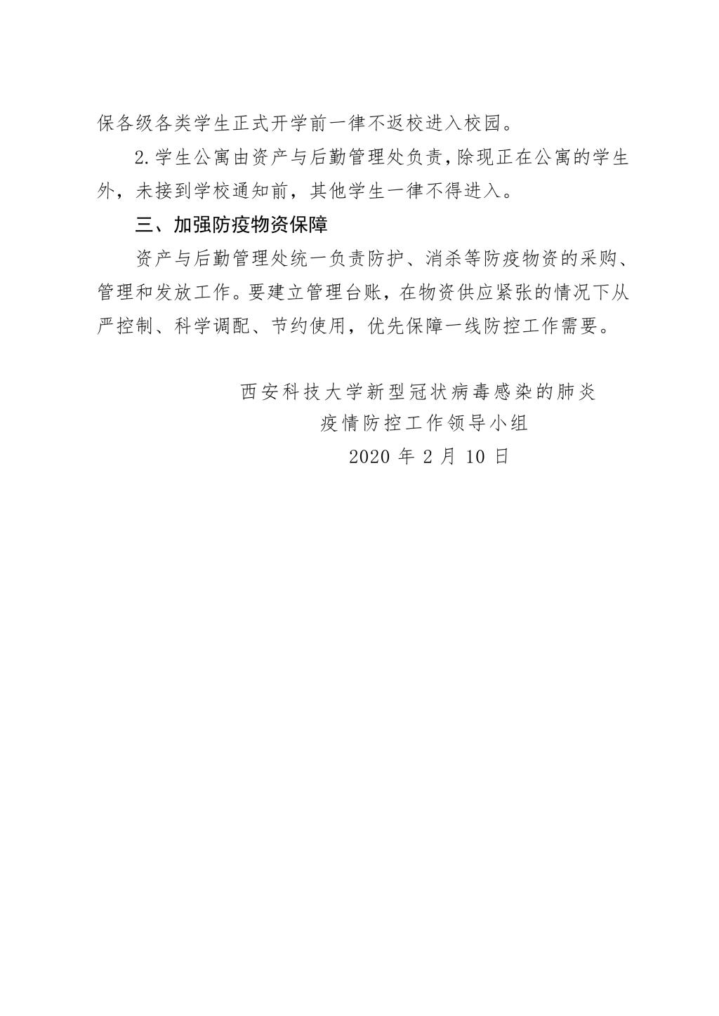 关于做好”新冠肺炎“疫情防控隔离留观场所、校园门禁和防疫物资保障工作的通知(西科疫控组8号)