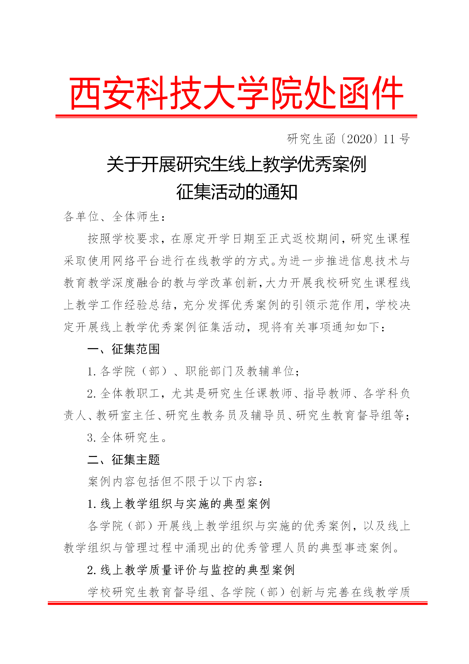 关于开展研究生线上教学优秀案例征集活动的通知.doc